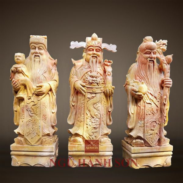 Bộ Tượng Phúc Lộc Thọ đá marble vàng, cao 120cm