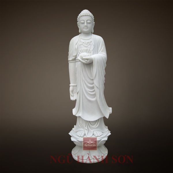 Tượng Phật Thích Ca đứng đá trắng, cao 80cm